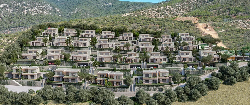 The Site displays its unique panoramic view, with dozens of colors of the sea and nature in every season, from every corner of your home and garden, just like a painting. Embraced by the hillside grove, teh site reveals the natural silhouette of the entire southern coast of the Bodrum Peninsula, including Gümbet, Bitez and Yahşi bay from the Karaada view, while making you forget that you are in the center of the city with a peaceful silence where time stands still. Since the project is located on a slope, not only the villas but also every flat, including the upper floors, have a garden. That’s why every house in this complex offers the pleasure of a viewing terrace unique to that house.